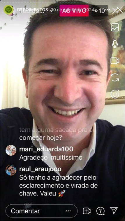 Tenho centenas de vídeos gratuitos no Youtube, Instagram, Tiktok, LinkedIn e no meu Blog. São conteúdos épicos, transformadores, com insights poderosos e práticos. Sem mencionar a Live de Terça, que eu respondo dúvidas ao vivo.